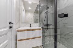 Дополнительный комфорт в санузле обеспечивает система подогрева пола.