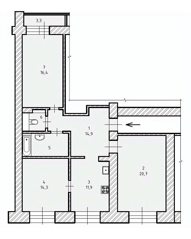 + планировка позволяет воплотить смелые дизайнерские решения