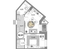 Срочно продаётся 2Е-квартира с одной спальней общей площадью 52.01 м2. в Приморском районе Санкт-Петербурга. Квартира находится в доме комфорт-класса, оформленном в стиле античной эстетики. Идеальный вариант для тех, кто хочет жить в стильном доме в окружении природы.