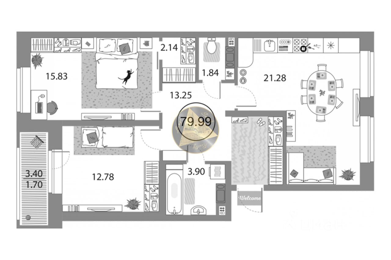 Срочно продаётся 2-комнатная квартира общей площадью 79,99 м2. в Приморском районе Санкт-Петербурга. Квартира находится в доме комфорт-класса, оформленном в стиле античной эстетики. Идеальный вариант для тех, кто хочет жить в стильном доме в окружении природы.