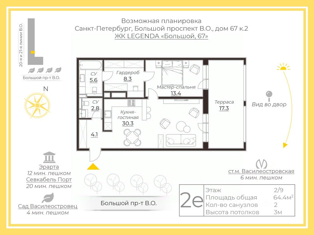 Единственное предложение с террасой в одном из лучших новых домов Васильевского острова
