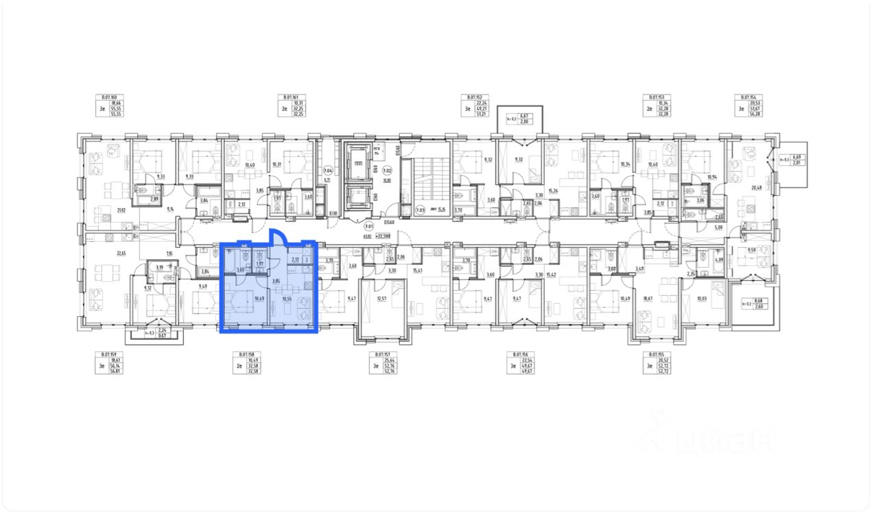 2Е-квартира 32,58 м² по переуступке в проекте бизнес-класса