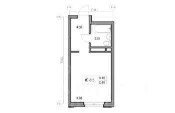 - Удобная основная комната (14.98 м²) вместит в себя аккуратный кухонный гарнитур.