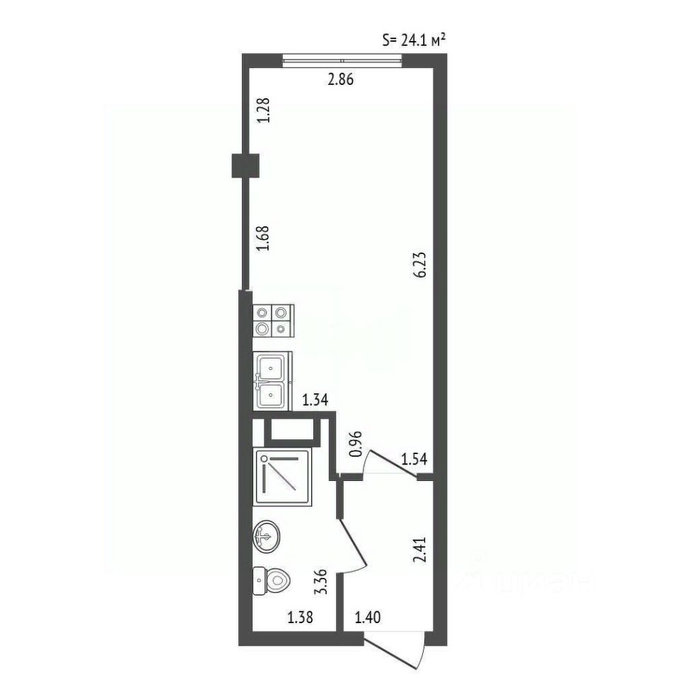 • Oбщaя площадь квaртиры: 24.1 кв.м.