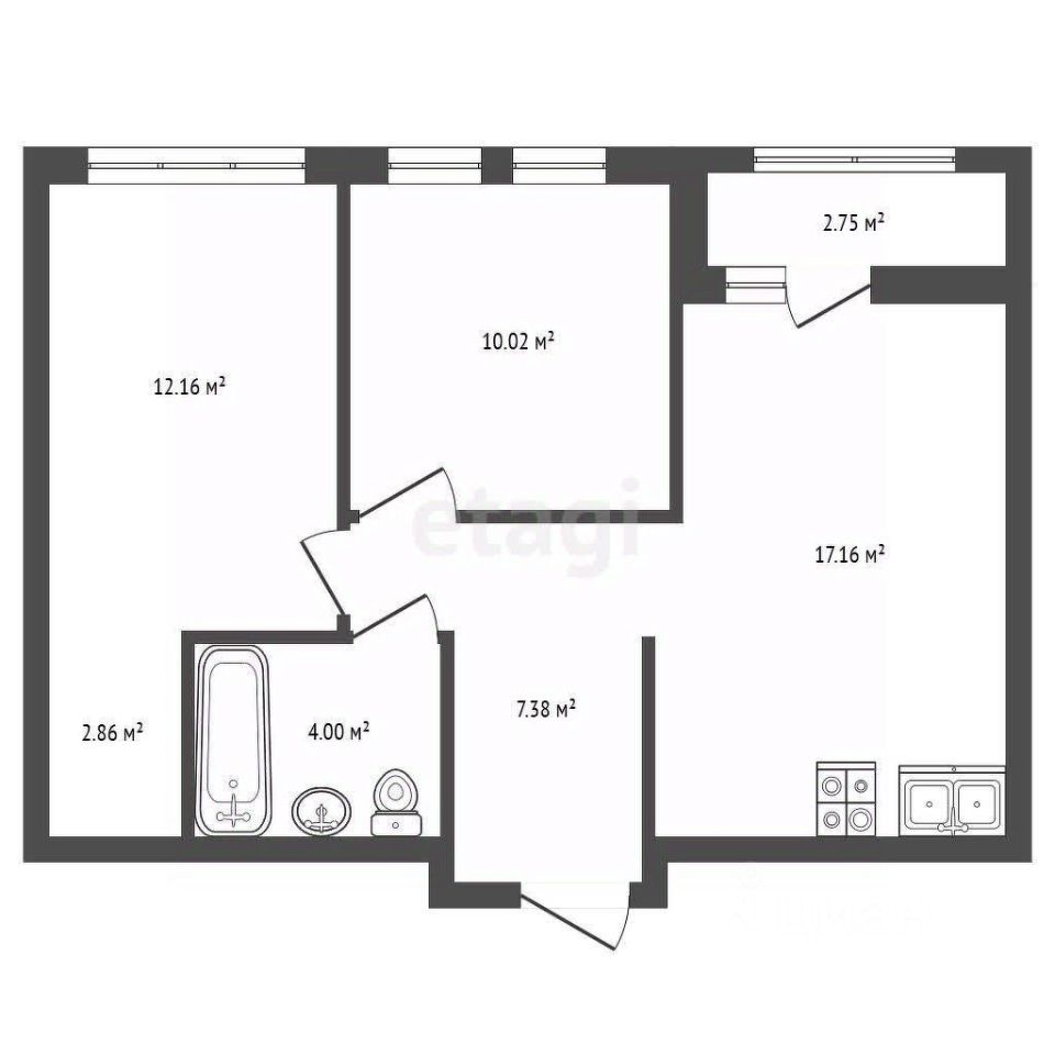• Oбщaя площадь квaртиры: 53.2 кв.м., балкон: 2.75 кв.м.
