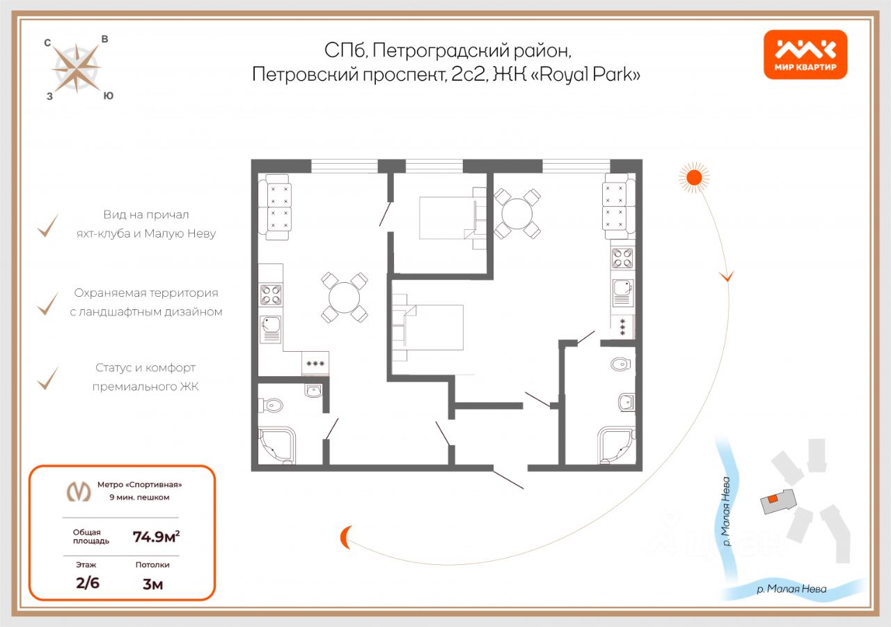 "Royal Park" предлагает именно это редкое сочетание уединения и комфорта, создающее ощущение жизни на собственном острове. Просыпаясь утром, вы будете любоваться отражением солнца в Неве, а вечером наслаждаться тишиной и свежим бризом.