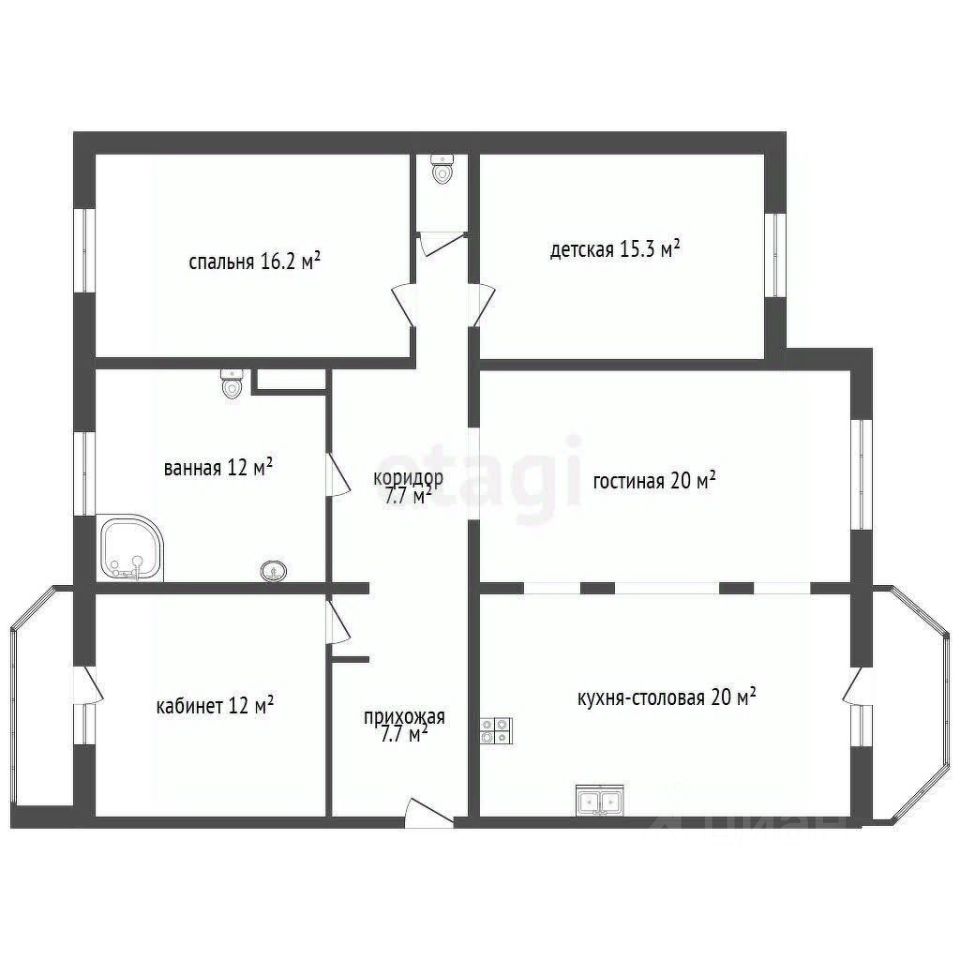 Есть два санузла — один раздельный, второй совмещённый, что особенно удобно для семьи с детьми.