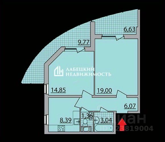 Площадь квартиры указана БЕЗ УЧЕТА 2-х ПРОСТОРНЫХ балконов (9.77 и 6.63 м²).
