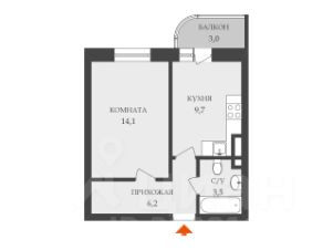 Общая площадь квартиры составляет 34,1 кв. м, жилая площадь — 14,1 кв. м, а площадь кухни — 9,7 кв. м. Квартира расположена на 7-м этаже 13-этажного монолитно-кирпичного дома, построенного в 2020 году.