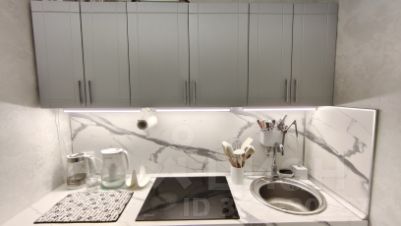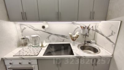 - В просторной кухне - кухонный гарнитур с подсветкой. Варочная панель и холодильник остаются новому владельцу, духовой шкаф по согласованию.