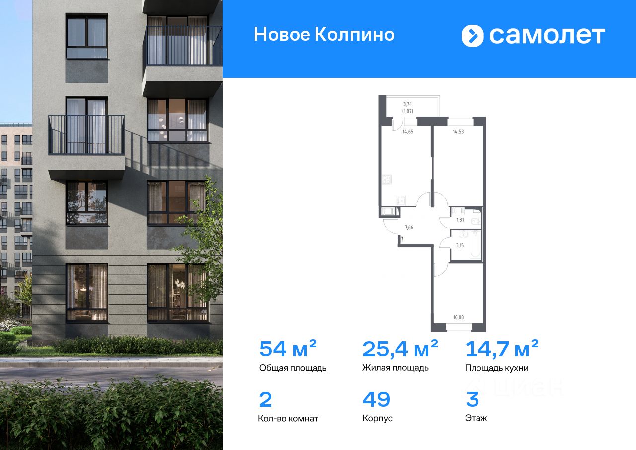 Строим кварталы для жизни с заботой о будущем. Предлагается 2-комнатная квартира комфорт-класса 54 кв.м в корпусе 49 на 3 этаже, в ЖК "Новое Колпино"