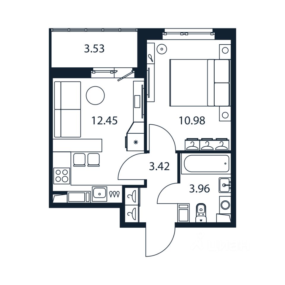 Прямая продажа от застройщика! Готовая Евро-двушка 30.2 кв.м с кухней 12.45 кв.м с предчистовой отделкой на 11 этаже в сданном ЖК "Полис Лаврики".