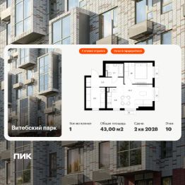 Продаётся 1-комн. квартира площадью 43 кв.м на 10 этаже 12 этажного дома (Корпус 6, Секция 4) проекта ПИК Витебский парк. Светлый просторный подъезд на уровне земли, функциональная планировка, большие окна, c отделкой.