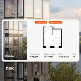Продаются апартаменты-студия площадью 24,15 кв.м на 13 этаже 15 этажного дома (Вольта, Секция 1) проекта ПИК Вольта.