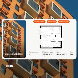 Продаётся 1-комн. квартира площадью 37,64 кв.м на 20 этаже 24 этажного дома (Корпус 5, Секция 2) проекта ПИК Заречный парк. Светлый просторный подъезд на уровне земли, функциональная планировка, большие окна, c отделкой.