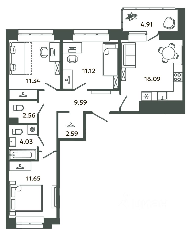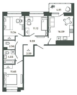 Продажа новой 3-комнатной квартиры от застройщика в ЖК "Загляденье" (микрорайон Новоселье, Ломоносовский район)