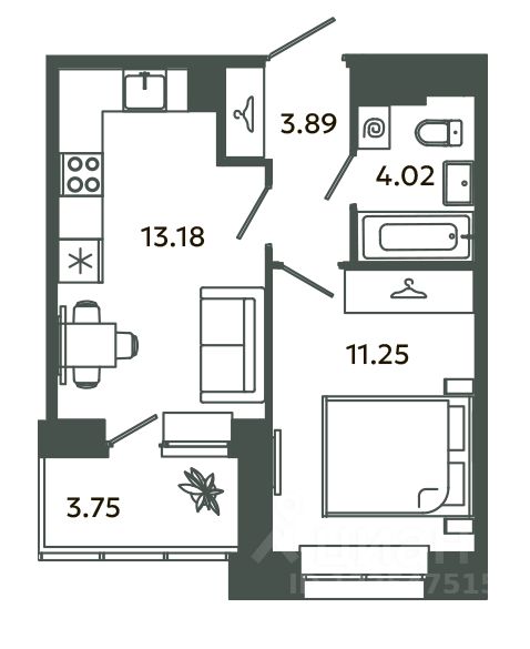 Квартира площадью 34,22 м² без отделки. Срок сдачи - IV квартал 2027 года. Доступна ипотека, рассрочка и индивидуальные условия оплаты.
