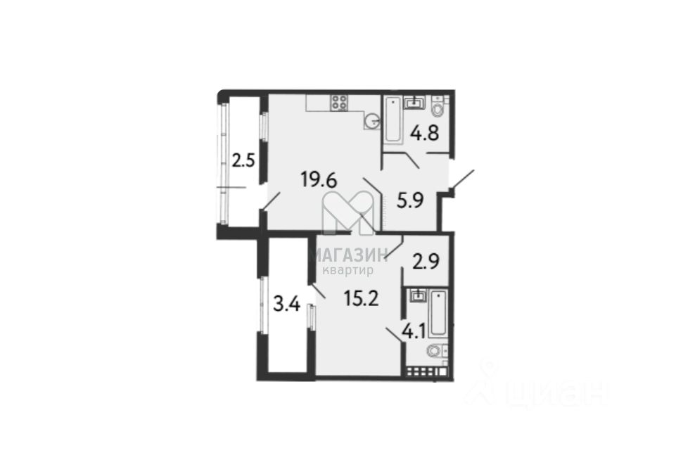 Квартира без отделки, без обременений, 2 лоджии, мастер-спальня.