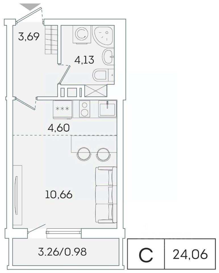 Продаётся студия в сданном доме (Екатерининская, 11 (Корпус 4)), срок сдачи: III-кв. 2024, общей площадью 23 кв.м., на 5 этаже. Расположение, транспортная доступность