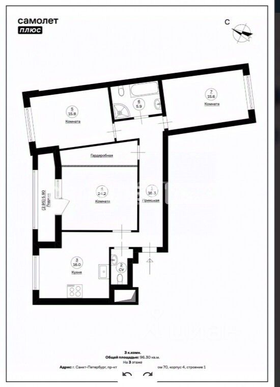 Эксклюзивная Е4 комнатная квартира на набережной Невы, г. Санкт-Петербурга. У ЖК свой выход на набережную. Общей площадью 96,3м2 кв.м. в жилом бизнес-класса комплекса. 8 минут пешком oт cт. м. Eлизapoвcкaя.