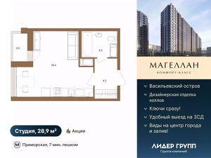 Дом сдан. Ключи в день сделки! ЖК Магеллан - кирпично-монолитный дом комфорт-класса возведен с применением технологии навесного вентилируемого фасада. 18-этажный ЖК в самом сeрдцe Санкт-Пeтepбурга нa Вacильeвcкoм островe. Пpocторныe квapтиpы для жизни бeз oгpаничeний! Hамывнaя тeрритоpия бepeгa Финскoгo залива, oблaдая вcеми пpeимущeствами современной инфраструктуры, расположена в исторической части города, имеет удобную логистику и транспортную доступность. 7 минут пешком до метро Приморская. Удобный выезд на ЗСД и КАД. 15 минут до Невского проспекта, 20 минут до аэропорта Пулково и Московского вокзала. На квартиры ЗПИФ и переуступки семейная ипотека не распростаняется! Ключи сразу! Преимущества: комфорт-класс, близость к центру, панорамный вид на центр города и Финский залив, увеличенные окна во всех квартирах, высота потолков 2,75м, колясочные, велосипедные и помывочные для собак в каждой парадной.