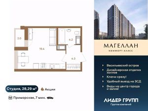 ЖК "Магеллан" — это готовый дом класса "комфорт" в составе современного квартала "Гавань Капитанов" на Васильевском острове Петербурга. Безопасная охраняемая территория и видеонаблюдение обеспечивают спокойствие жителей, а благодаря близости к станции метро "Приморская" и выездам на ЗСД, вы всегда сможете быстро попасть в любую точку города.
