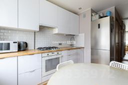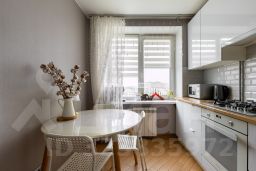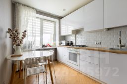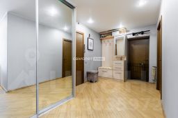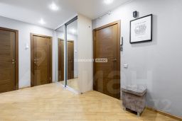 На кухне остаётся кухонный гарнитур со встроенными посудомойкой Bosh, духовкой, варочной панелью и вытяжкой Mounfeld. Также остаётся мебель в прихожей, большой встроенный шкаф-купе и стиральная машина LG.
