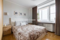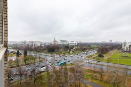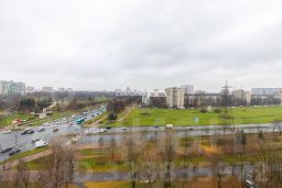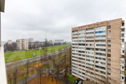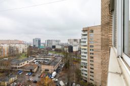 Окна выходят на север и восток, солнце светит до 12-13 часов дня. С балкона открывается панорамный вид на Пискаревский проспект, парк Академика Сахарова и церковь Рождества Христова. Балкон площадью 11 м2 с раздвижным остеклением, пол выложен террасной доской.