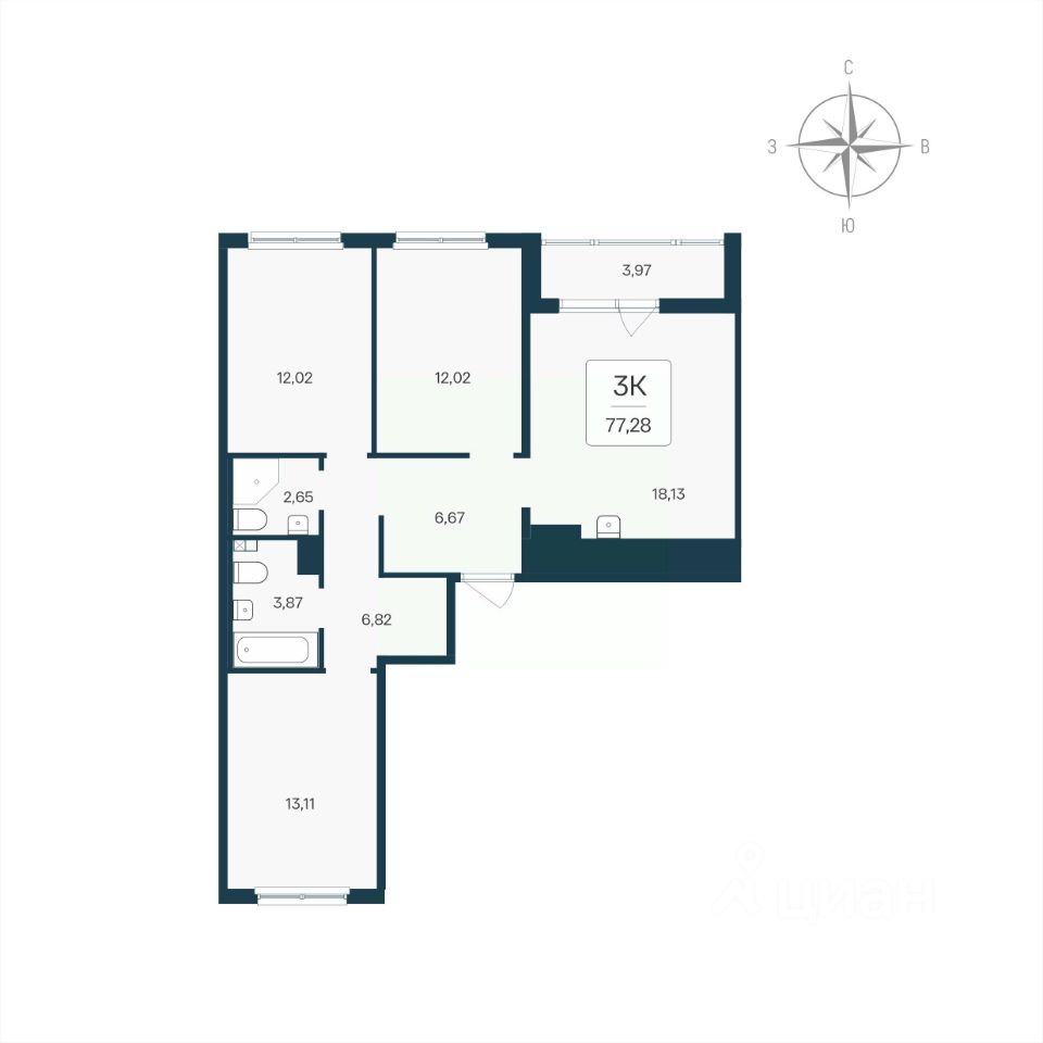 Общая площадь77,28 м²
