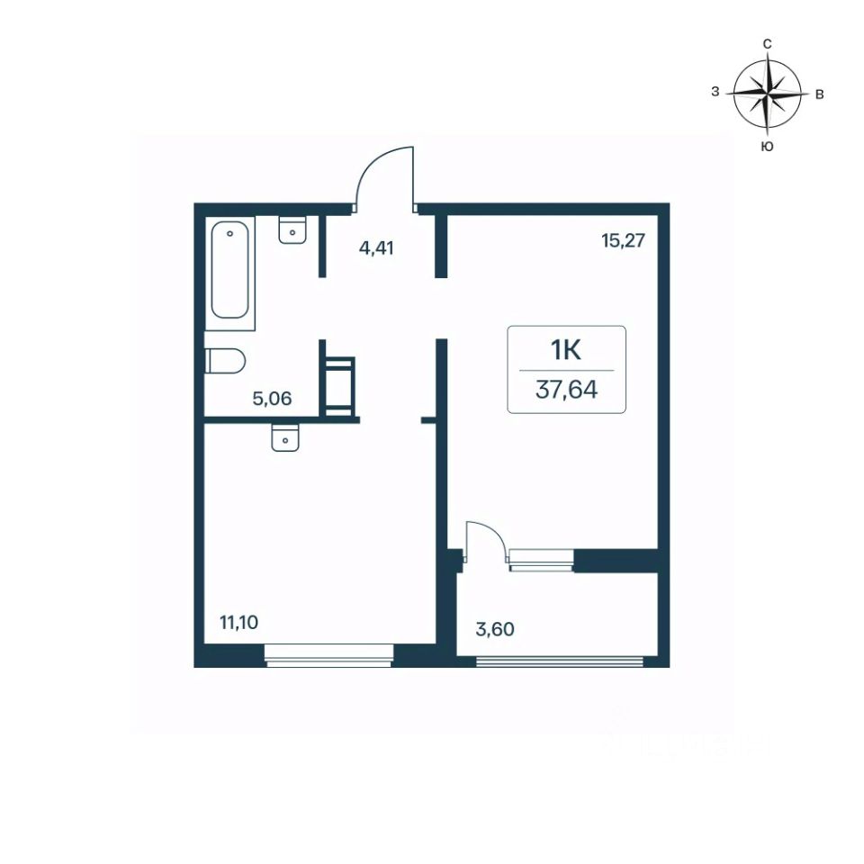 Общая площадь37,4 м²
