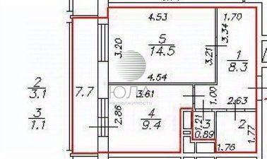 кухня: 9,4 м².
