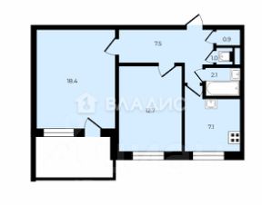 Площадь 49,7 кв.м с продуманной и функциональной планировкой: две полноценных изолированных комнаты 10 и 18 кв.м, удобная кухня 7 кв.м.