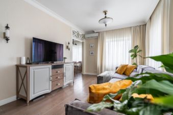 Светлая, теплая квартира : тепло обеспечивают 3-х камерные новые немецкие тонированные стеклопакеты. Современный, стильный дизайнерский ремонт (стиль Прованс) обеспечивает комфорт и удобство -все продумано до мелочей. Ремонт выполнен из качественных материалов: паркетная доска, итальянская плитка, немецкая сантехника, вся мебель выполнена под индивидуальный заказ. Просторная, удобная кухня с современной техникой порадует любую хозяйку . Теплый пол в санузлах, прихожей, кондиционеры в 3-х комнатах добавляют комфорта и уюта.