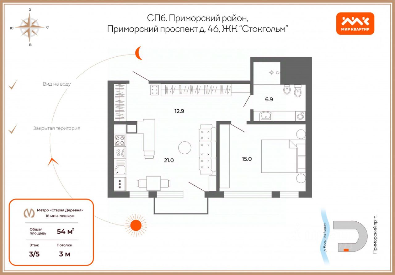 ЖК "Стокгольм" раскинулся на набережной напротив Елагина острова.