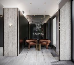 При разработке проекта архитектурная мастерская Юсупова гармонично вписала жилой дом в окружающую застройку, использовав краснокирпичную облицовку и элементы декора в стиле модерн. В оформлении проекта принимает участие и знаменитый художник с мировым именем Михаил Шемякин. Маскароны из его коллекции "Метафизические головы" будут украшать главный фасад Talento. А интерьеры дома разработаны по проекту Олега Клодта потомка петербургского скульптора времен царствования Николая I.