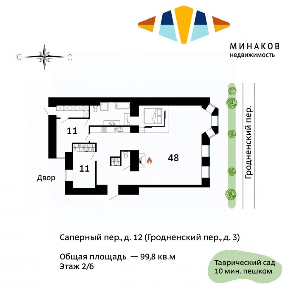 Арт. 50645903 Фасадная квартира в тихом, зеленой тупике Гродненского переулка - настоящий бриллиант, не часто встречающийся в продаже.