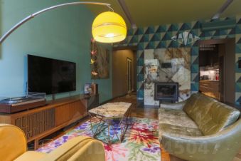 Изюминка квартиры - действующий камин, отделанный натуральным кварцитом "Патагония".