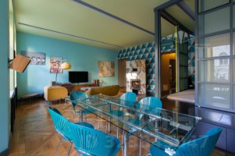 Сейчас квартира зонирована на приватную и парадную часть. Есть две отдельных комнаты - сейчас детская и кабинет.