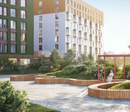 Занимайтесь йогой в воркаут-пространстве и бегайте по зеленому бульвару. Предусмотрели догхабы, площадь с амфитеатром и паркинги за пределами двора.