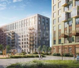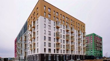 Дом высотой до 9 этажей с панорамными балконами выполнены в скандинавском стиле.