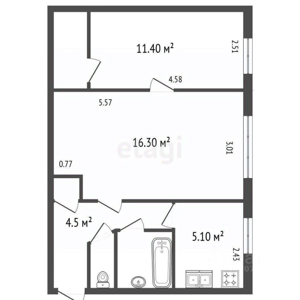 2 комнаты — простор и уединение для всех членов семьи.