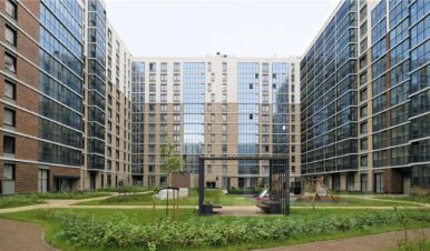 Облагороженная территория комплекса — закрытая зона с уютными дворами, пешеходным бульваром, зонами отдыха, площадками для малышей, зеленым оазисом и ландшафтным дизайном. Предусмотрена километровая велодорожка и собственный ледовый каток, который зимой — хоккейная арена, а летом — футбольное поле. В дворе также расположены площадки и детский городок.