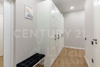 В квартире предусмотрены две гардеробные: одна из них расположена прямо в спальне, а вторая - отдельно для всей семьи