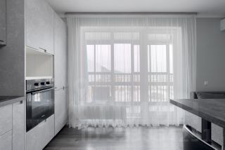 Кухня-гостиная площадью 17 м² с панорамными окнами и выходом на балкон в 7 м², где можно наслаждаться свежим воздухом и красивым видом на поле, которое не подлежит застройке. Мебельный кухонный гарнитур наполнен встроенной техникой (холодильник, П/М, Ст/М, духовой шкаф, варочная панель от Hansa +вытяжка); кондиционер.