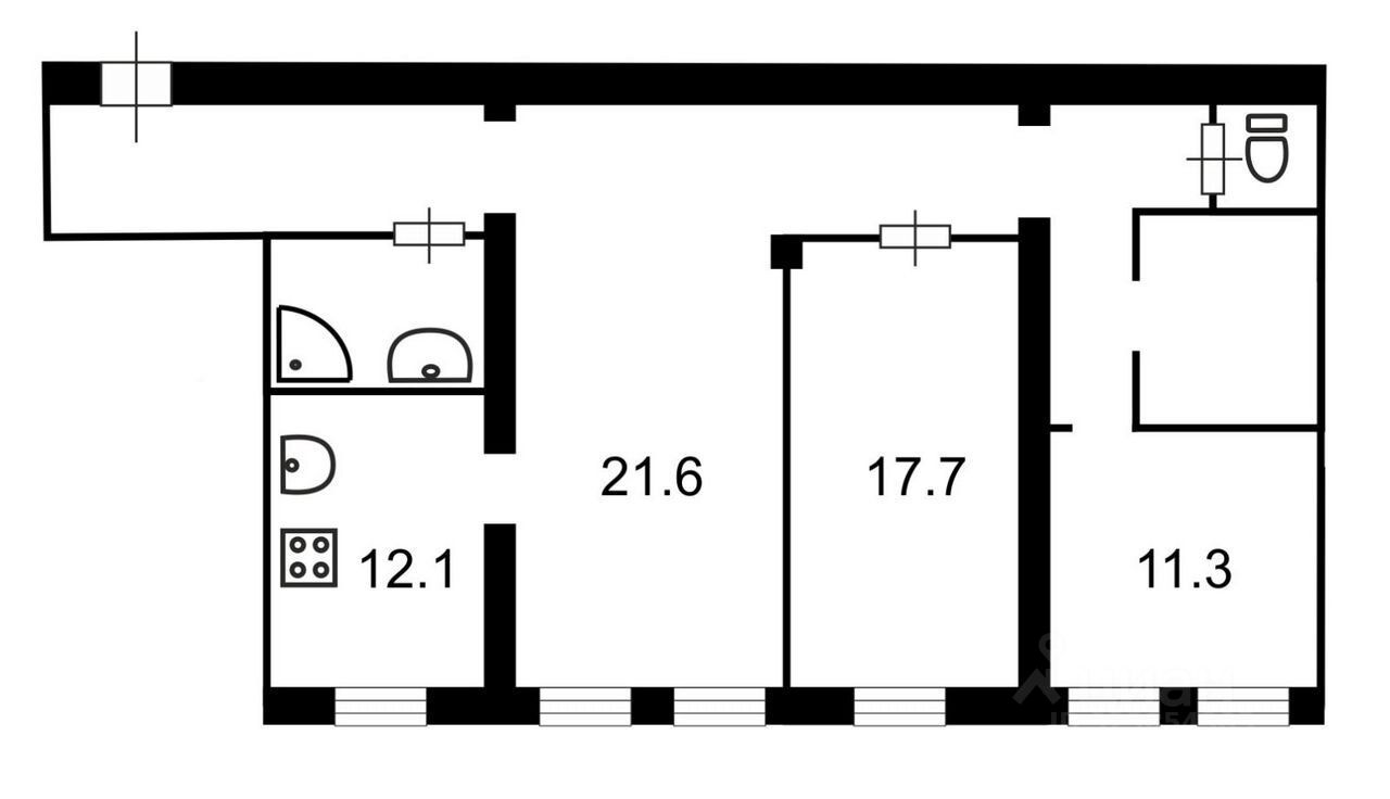 - Комнаты 21,6кв.м. 17,7кв.м. 11,3 кв.м.