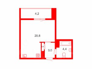 Дополнительные площади: Просторная застекленная лоджия 4,2 м² и совмещенный санузел 4,4 м².
