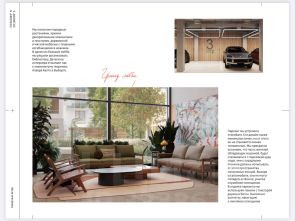 Интерьерные лобби и холлы, парадные с растениям, ярким декором и мягкой мебелью, дизайнерский паркинг. Ярким акцентом проекта станут просторные остеклённые помещения на крыше урбан-вилл.