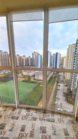 Есть просторная лоджия с панорамными стеклами, откуда открывается вид на двор, школу и стадион. Нет шума дорог и близко стоящих домов.
