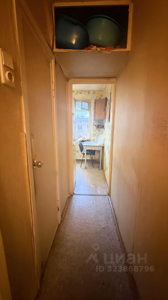 Общая площадь 44,4 метра, комнаты смежные ( 16,4 +11,5 )метров, кухня 5,5 метров. Санузел раздельный. Балкон. Квартира требует ремонта.