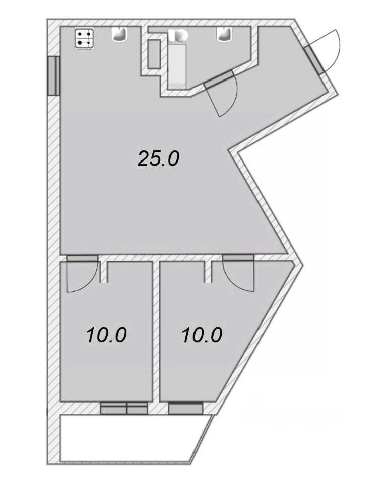Квартира с функциональной планировкой: кухня-гостиная 25 кв.м, две изолированные комнаты по 10 кв.м. Кладовая 2кв.м., общая площадь 61 кв.м. Панорамный балкон на две комнаты с остеклением в пол. Продажа вместе с системой хранения в спальне и в кладовой, кухонный гарнитур. Остальное по договоренности.